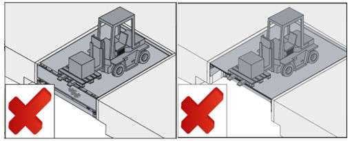 Проведение погрузочно-разгрузочных работ на уравнительной платформе в сложенном состоянии запрещено, так как это может привести к выходу оборудования из строя.