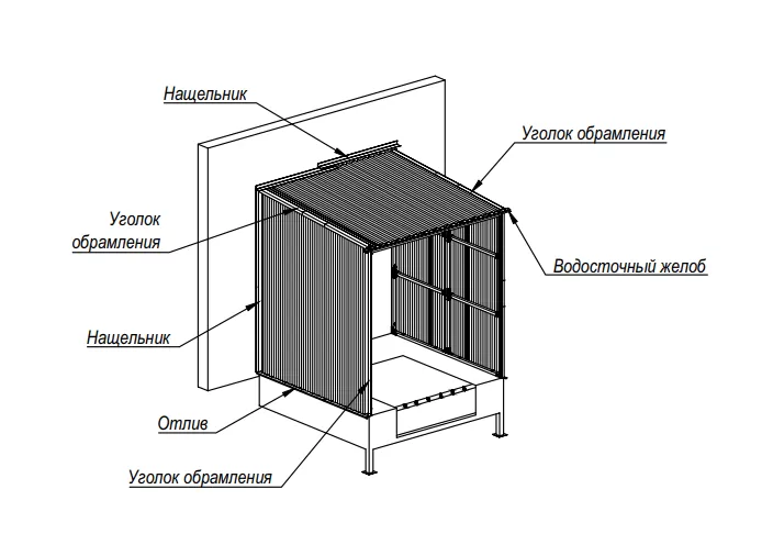 При заказе перегрузочного тамбура ALUTECH DH с обшивкой профилированным листом или сэндвич-панелью в стандартный комплект поставки входят нащельники примыкания к стене, отливы по бокам площадки, уголки обрамления стыков крыши и стен. Эти элементы надежно защищают от сквозняков и осадков.