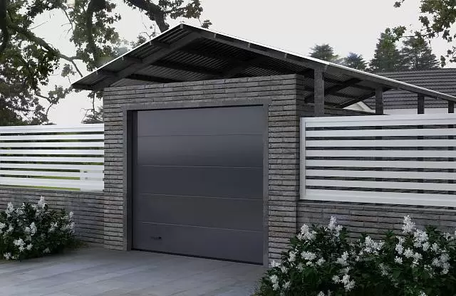 M-гофр, smooth, RAL 7016 (серый антрацит), встроенная калитка с плоским порогом, с автоматическим управлением, торсионные пружины